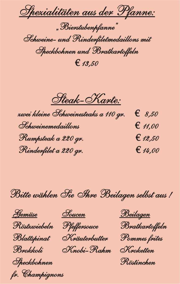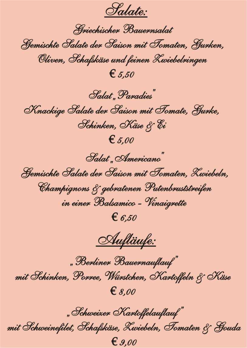Speisekarte "Paradies"